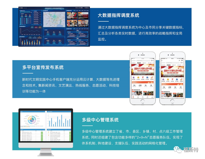 安徽福斯特信息技術(shù)有限公司持續(xù)助力新時代文明實踐中心建設(shè),充分利用大數(shù)據(jù)、云計算、移動互聯(lián)網(wǎng)等新一代信息技術(shù),打造新時代文明實踐中心云平臺,完善平臺動員、整合、引導、服務(wù)、創(chuàng)新和保障能力,實現(xiàn)新時代文明實踐中心的可持續(xù)運營。